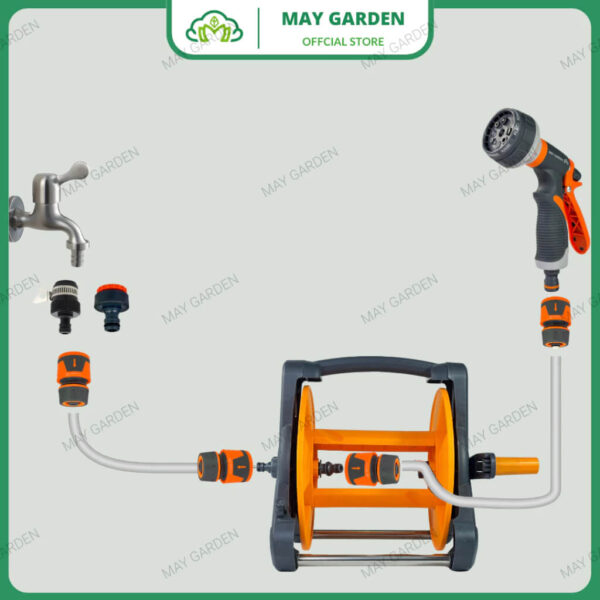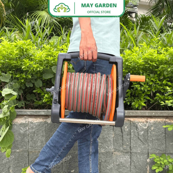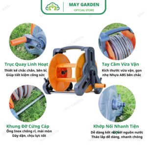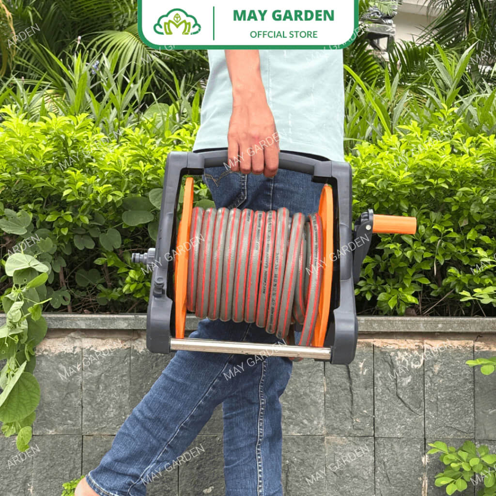 Khung rulo cuộn ống nước MAY GARDEN phù hợp để thu gọn ống nước sân vườn (phi từ 16mm đến 20mm, có thể dễ dàng kết nối với vòi xả nước thông dụng, đặc biệt tiện lợi cho việc tưới cây, xịt rửa sân vườn