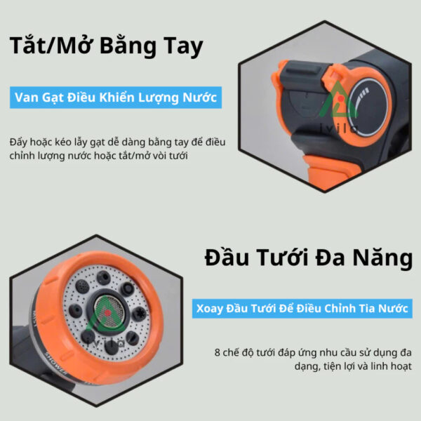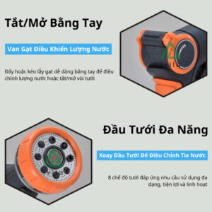 – Linh hoạt điều chỉnh lưu lượng với 8 kiểu phun khác nhau