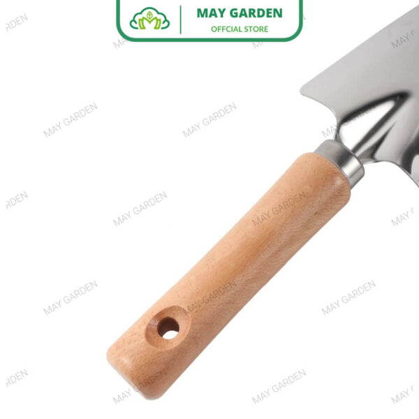 Xẻng có thiết kế một lỗ tròn ở đầu mỗi tay cầm, giúp bạn thuận tiện và an toàn treo lên khi sử dụng xong